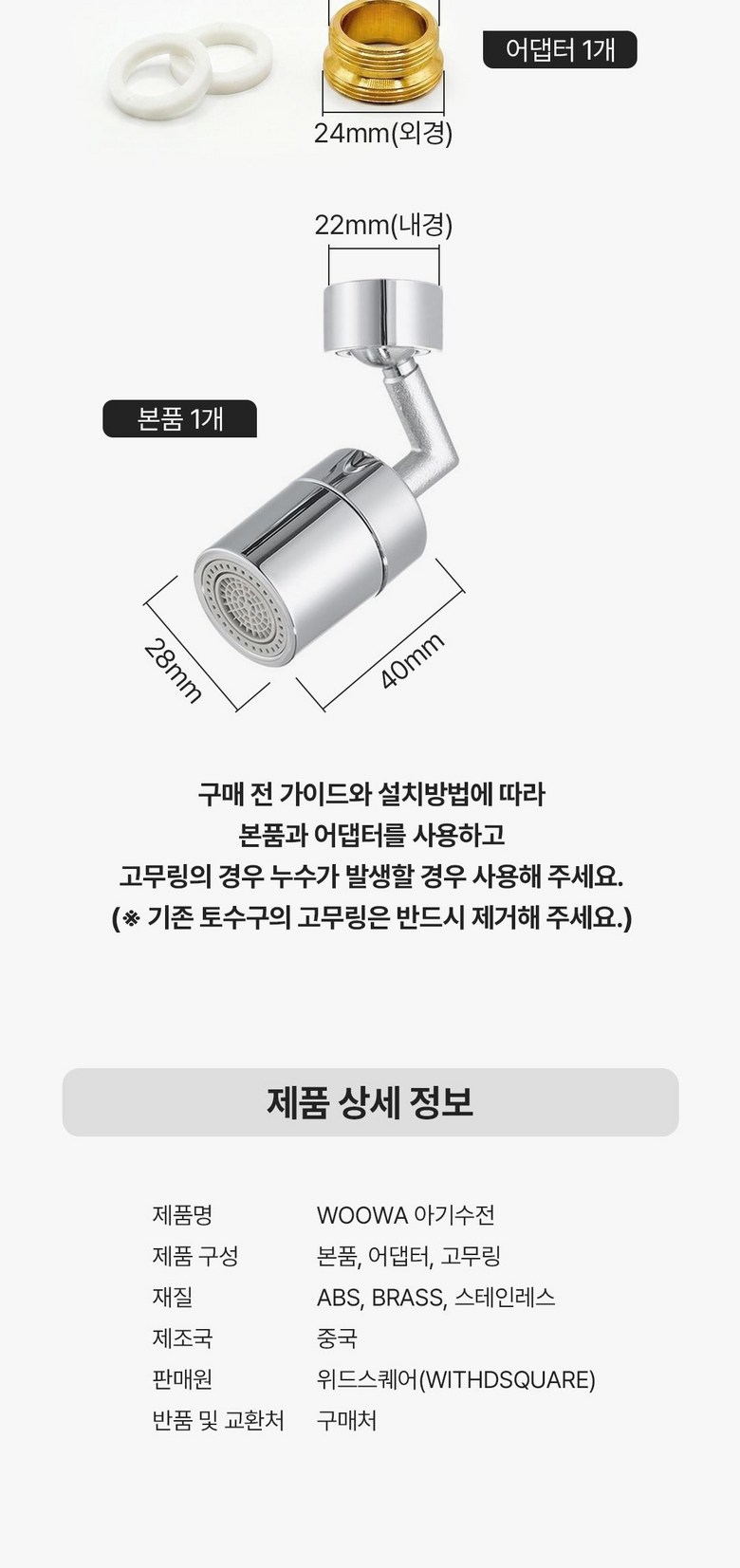 - 배수구지름: 22mm