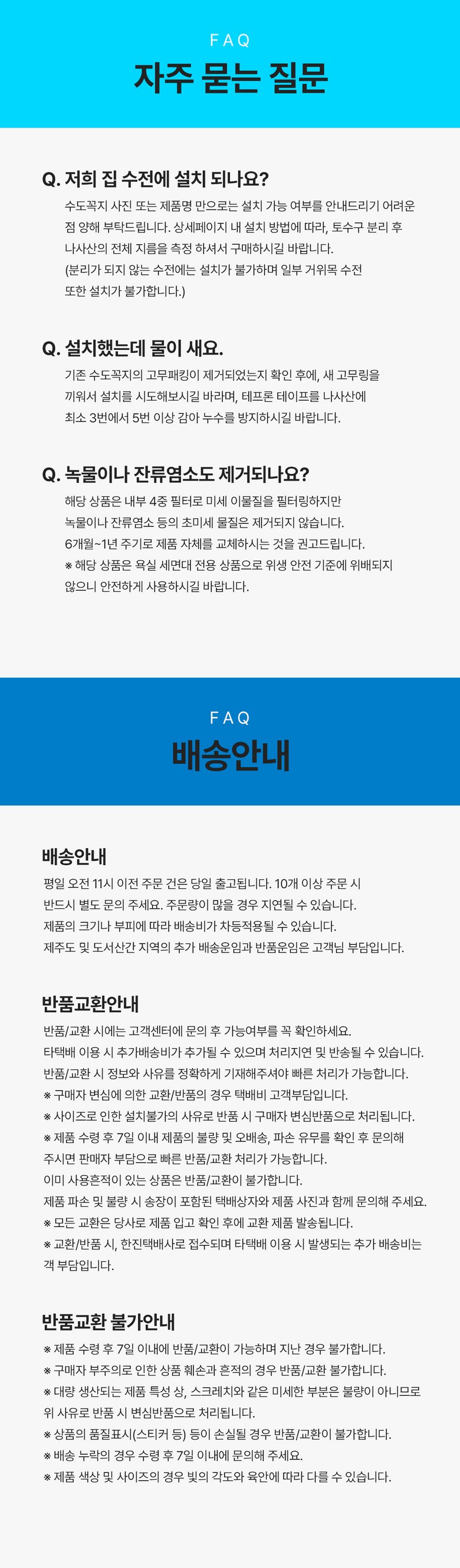 - 배수구소재: 플라스틱
