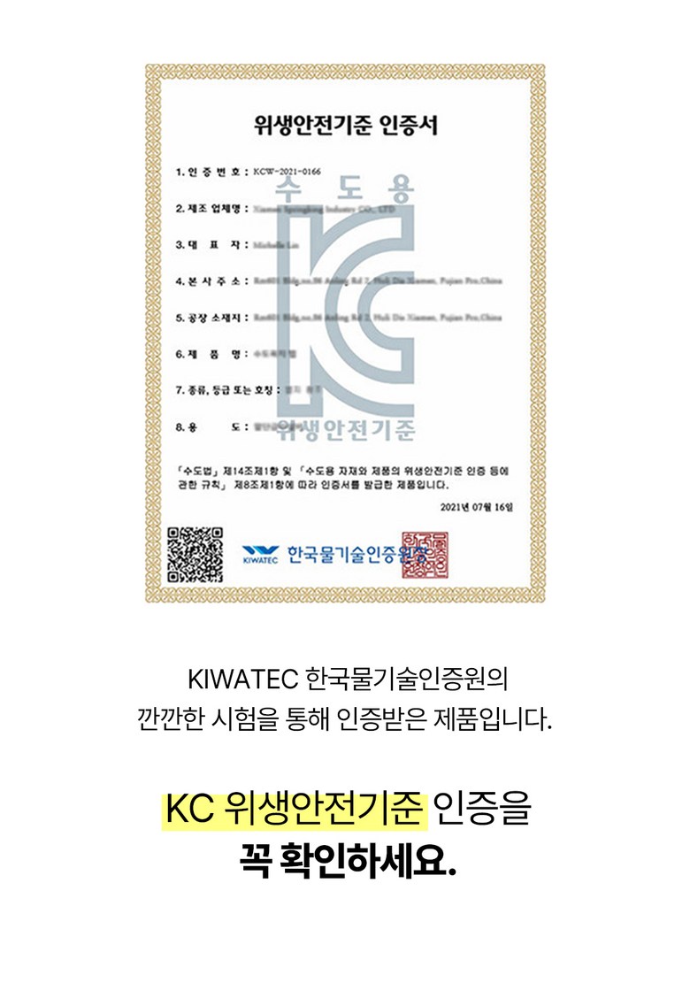 | 품명 및 모델명 | 720도 워터탭 및 SK-WS809S | 인증/허가 사항 | KCW-2021-0166 |