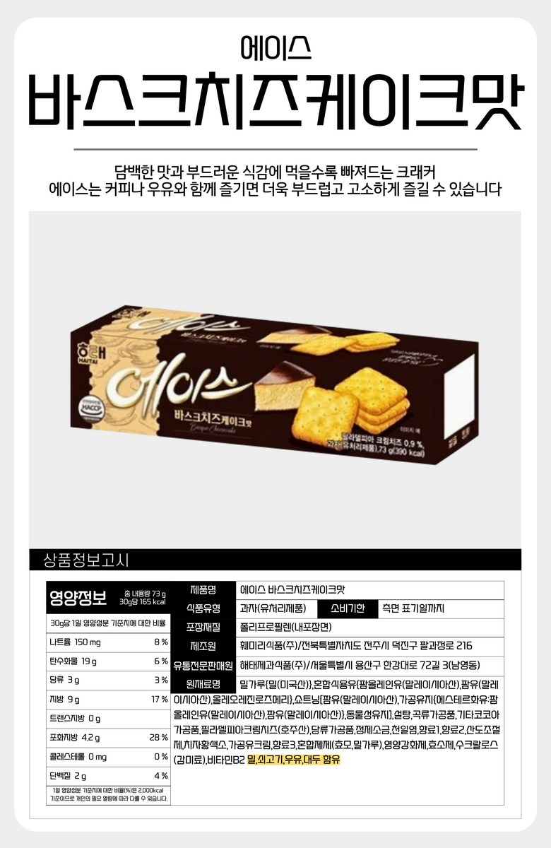 | 생산자 및 소재지 | 상품 상세페이지 참조 | 제조연월일, 소비기한 또는 품질유지기한 | 상품 상세페이지 참조 |