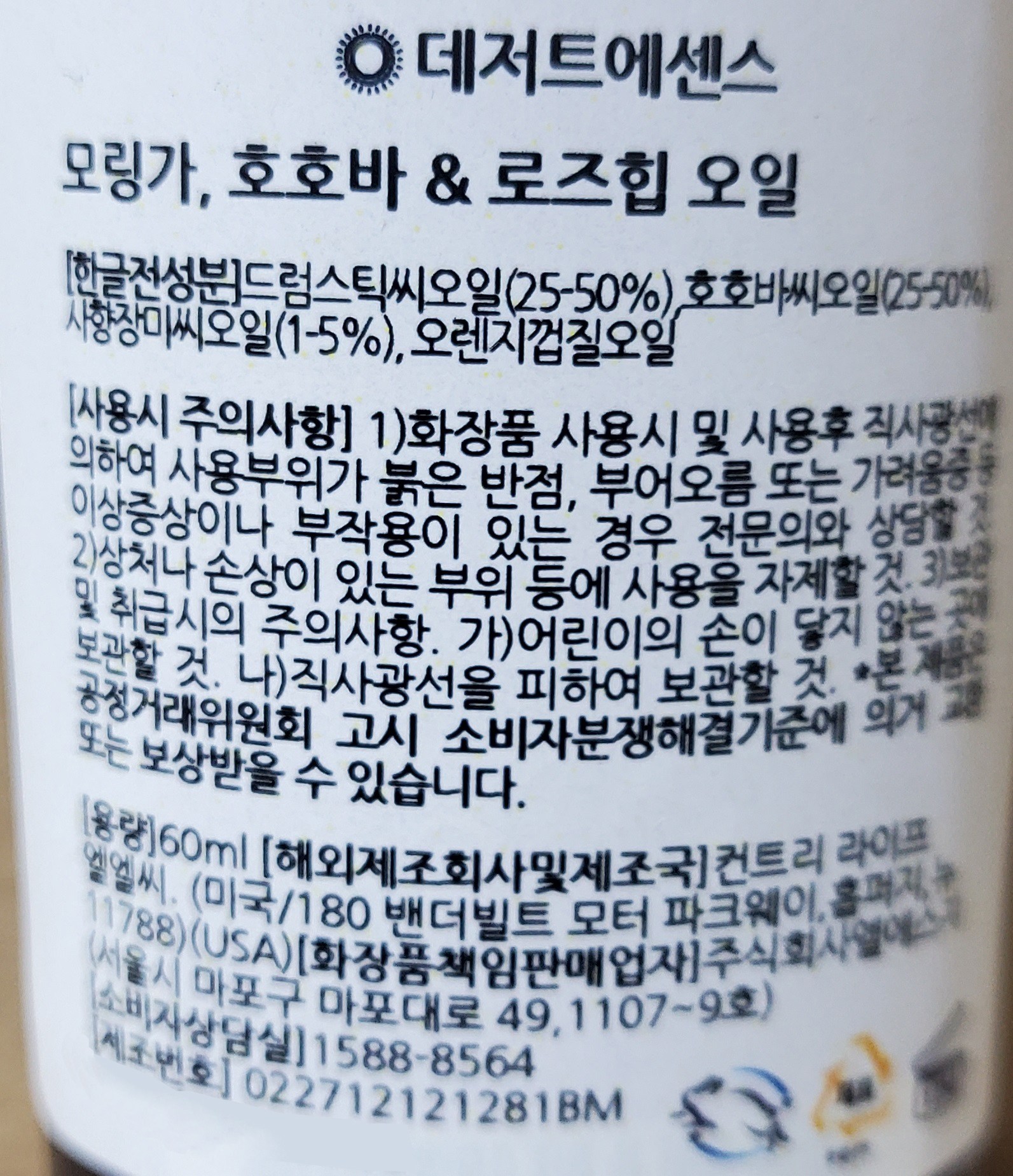 | 화장품제조업자, 화장품책임판매업자 및 맞춤형화장품판매업자 | 컨트리 라이프 엘엘씨 / ㈜엘에스지 | 제조국 | 미국 |