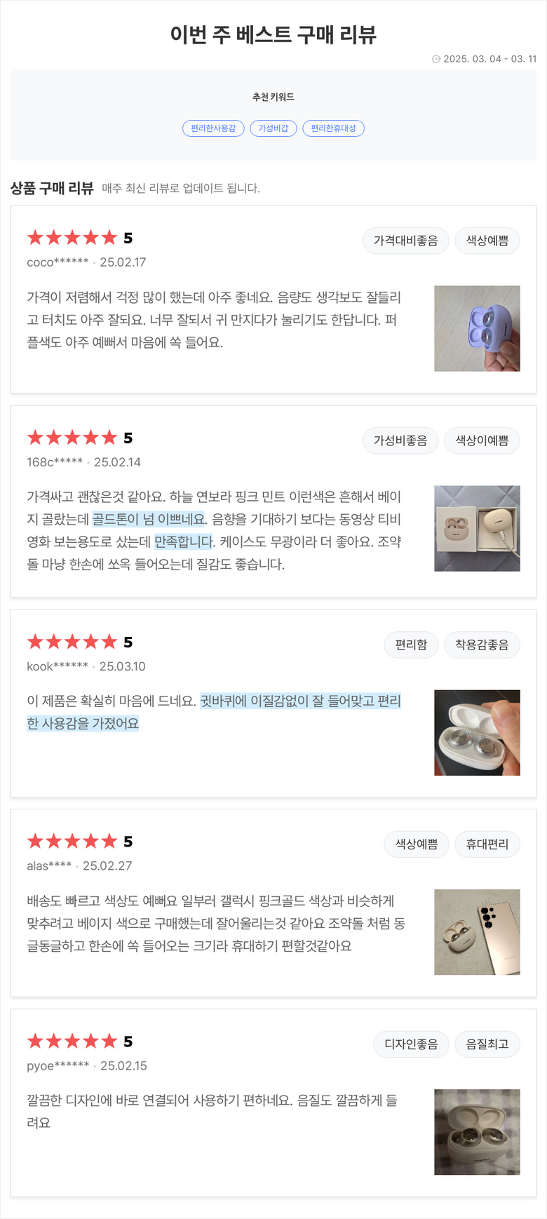 동일한 상품에 대해 작성된 상품 리뷰로, 판매자는 다를 수 있습니다.
