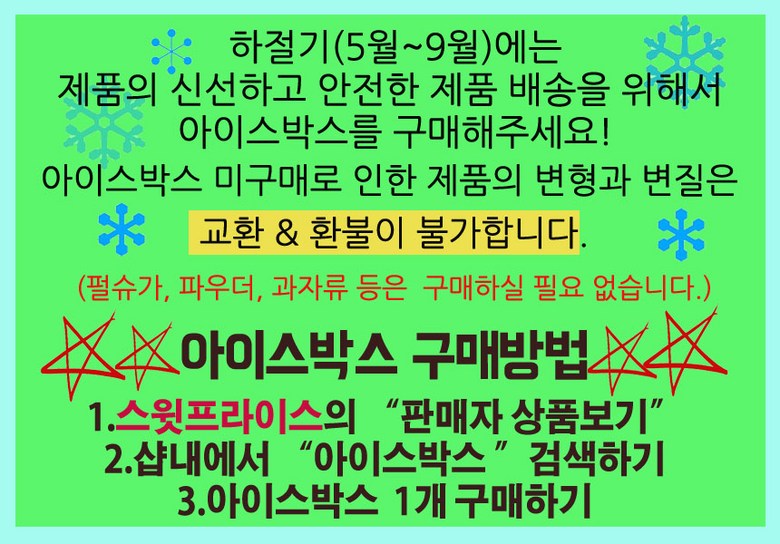 - ㆍ모니터 해상도의 차이로 인해 색상이나 이미지가 실제와 달라, 고객이 단순 변심으로 교환/반품을 무료로 요청하는 경우