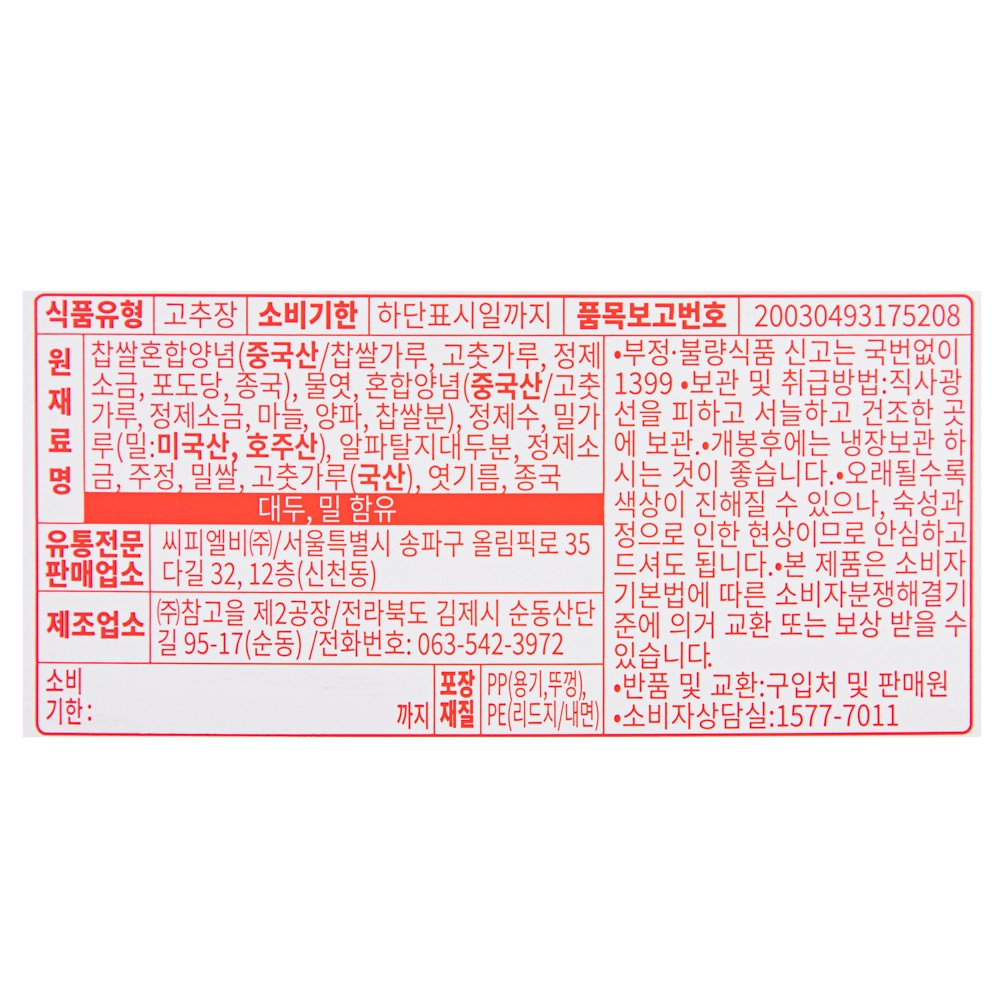 | 제품명 | 곰곰 찹쌀 태양초 고추장 | 식품의 유형 | 고추장 |