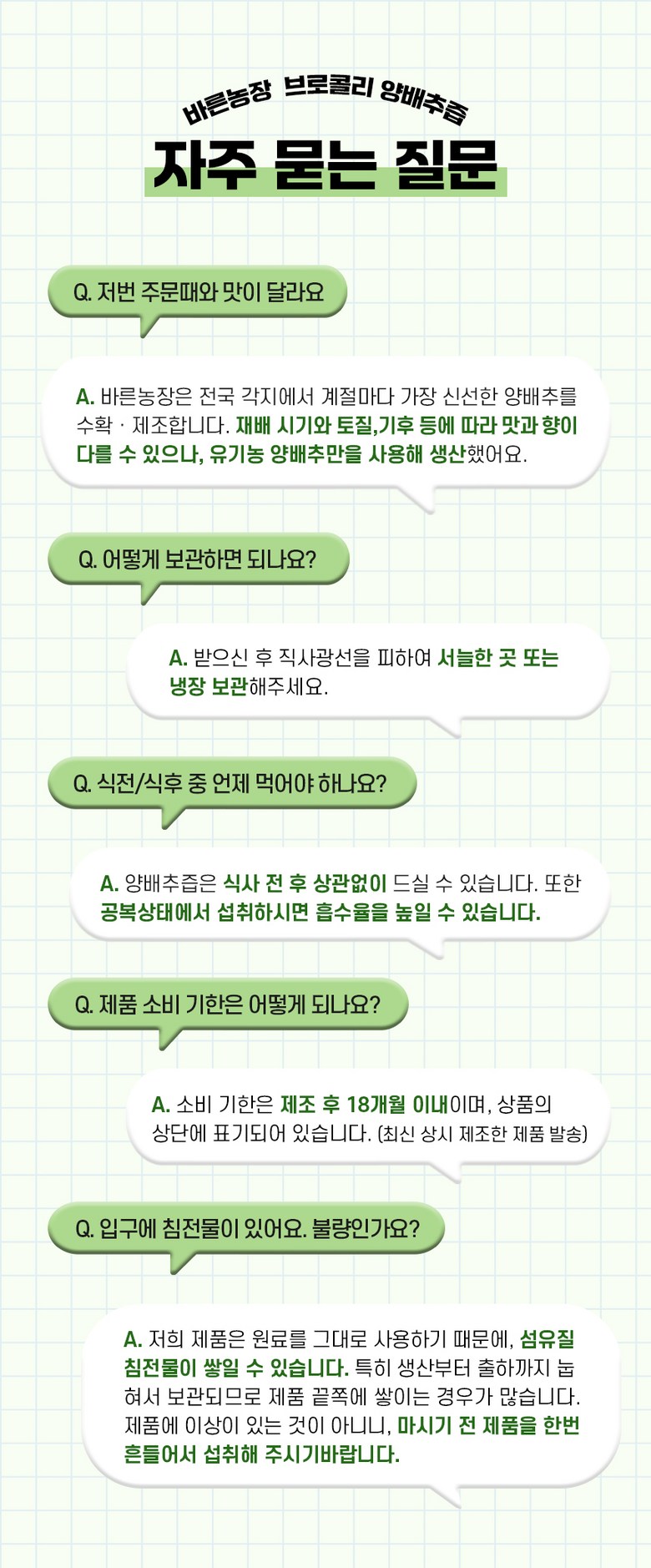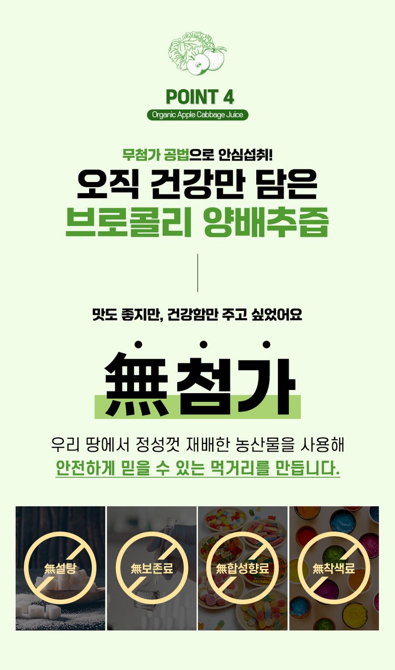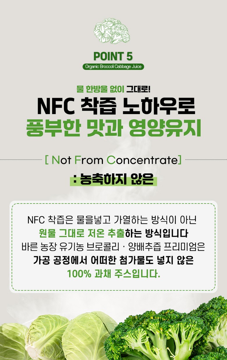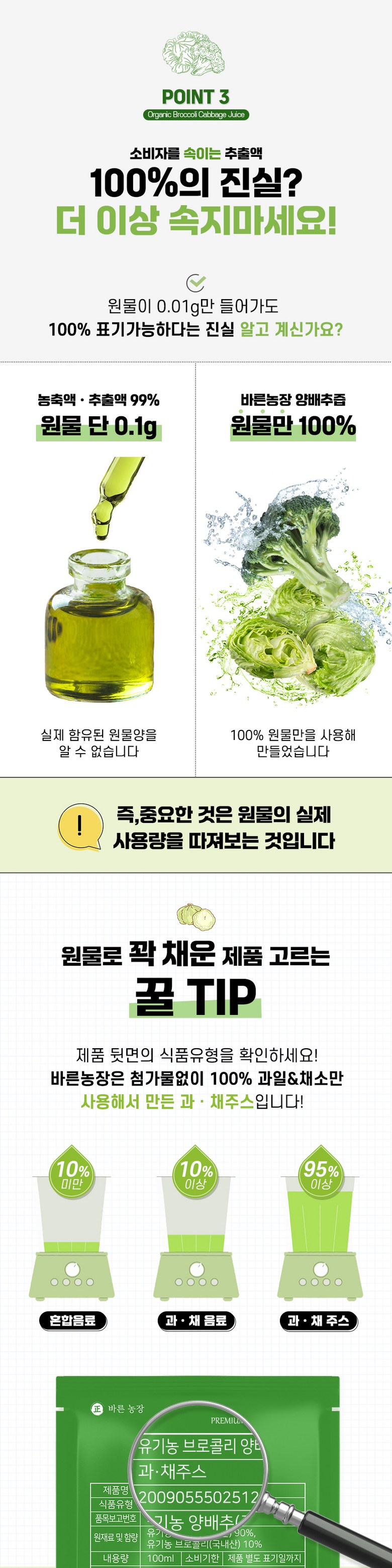 | 제품명 | 유기농 브로콜리 양배추즙 프리미엄 | 식품의 유형 | 과채주스 |