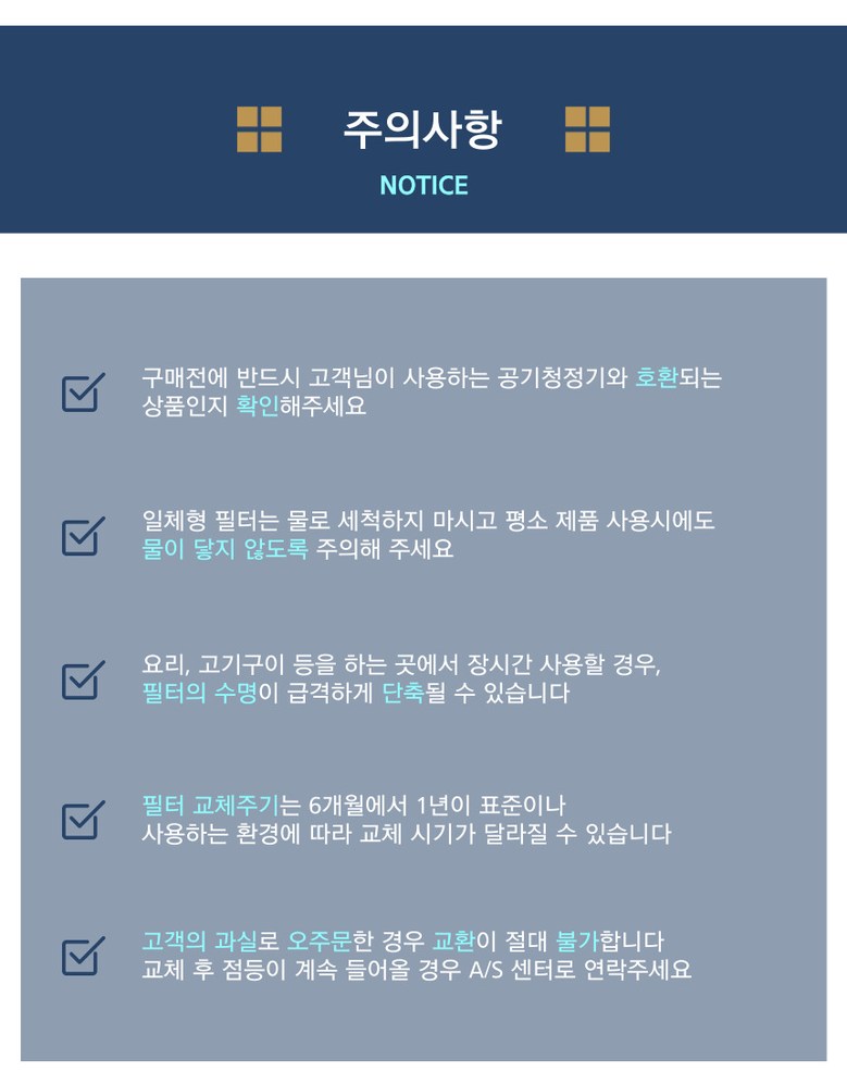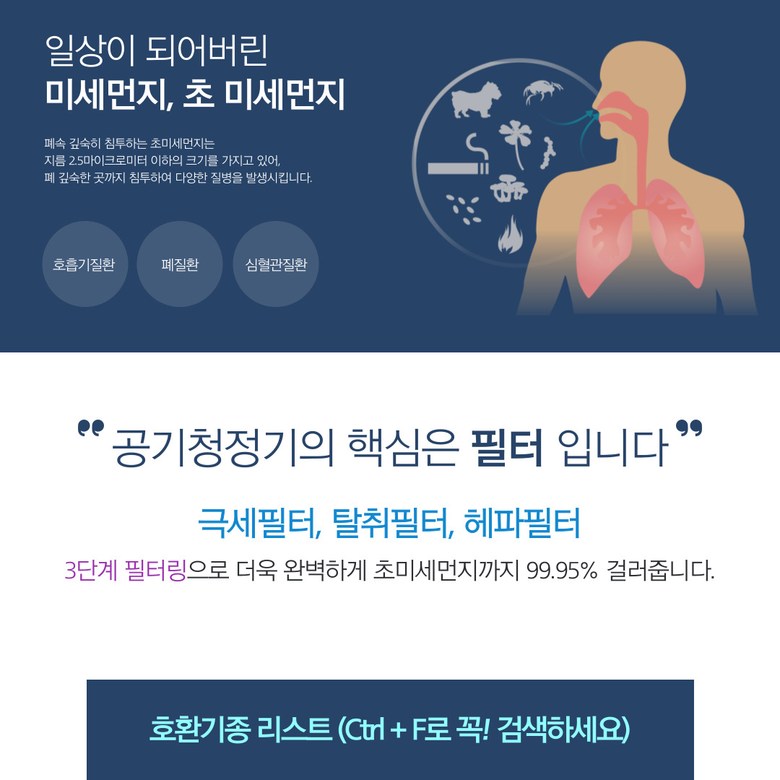 - 공기청정기 필터 종류: 집진+탈취필터