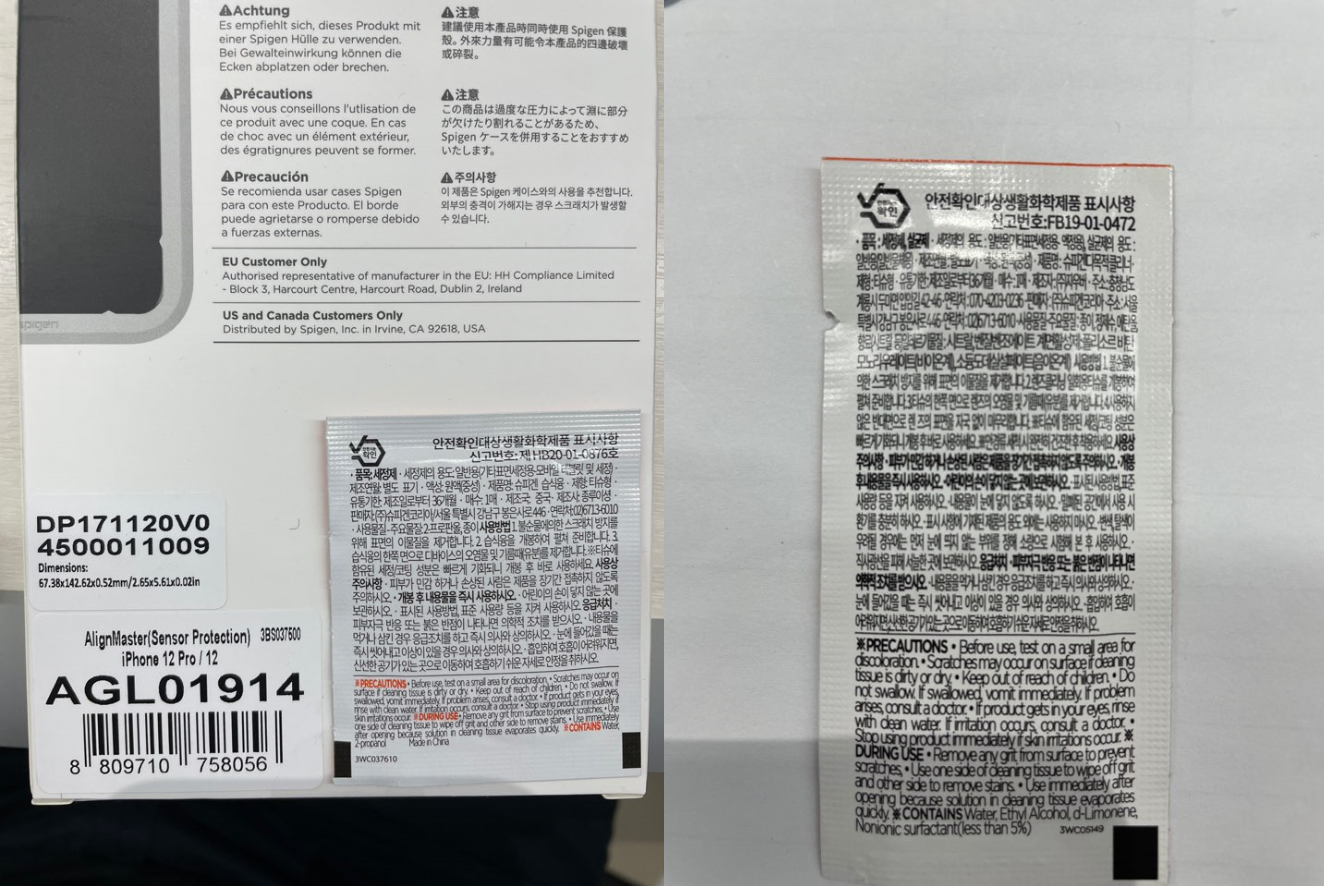 | 제조국(원산지) | 본품: 중국 , 국내클리너: 한국, 해외클리너: 중국 | 제조자(수입자) | 본품: 슈피겐코리아/슈피겐코리아 , 국내클리너: 주식회사 자우버, 해외클리너: 종루이셩/주식회사 슈피겐코리아 |