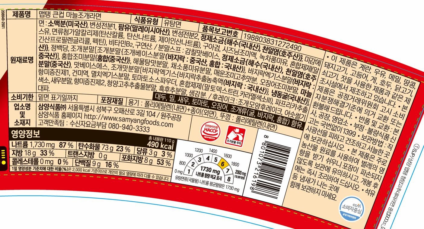 - 컵라면 용기 크기: 보통/큰컵 (81g 이상)