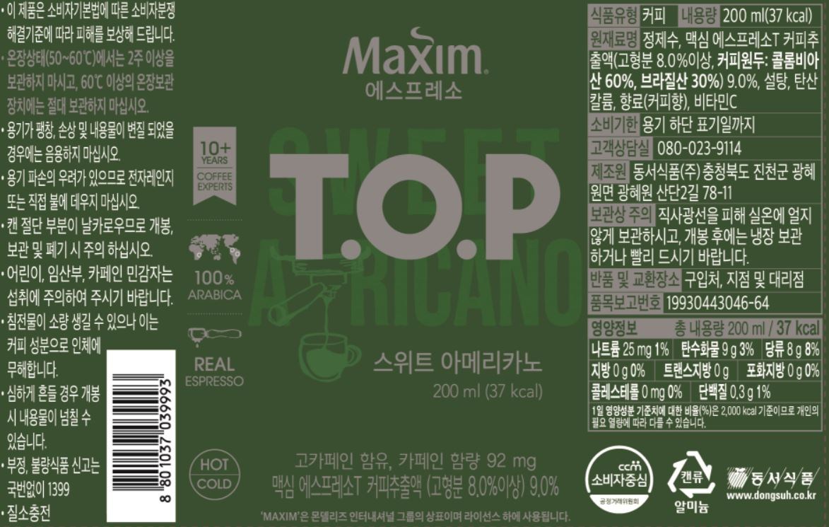 | 포장단위별 내용물의 용량(중량), 수량 | 200ml x 36캔, 2개 | 원재료명 및 함량 | 컨텐츠 참조 |