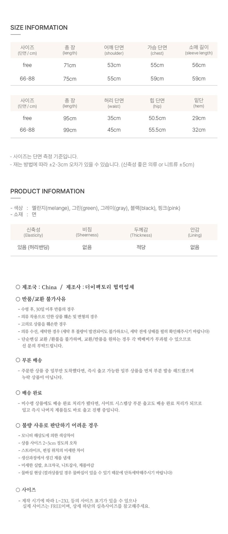 | 치수 | FREE(44-66) / 66-88 | 제조자(수입자) | 더이팩토리 협력업체 |