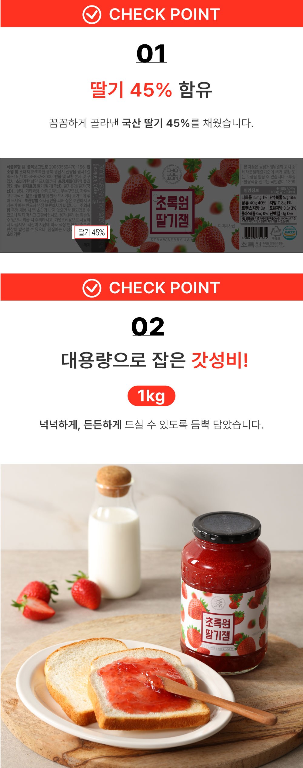 | 제품명 | 초록원딸기잼 | 식품의 유형 | 컨텐츠 참조 |