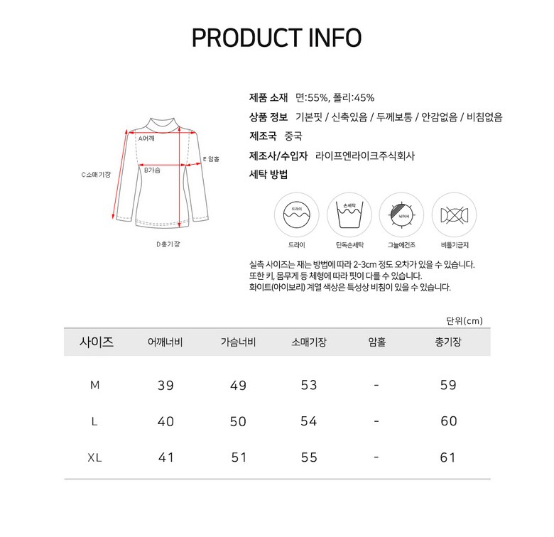 | 제조국 | 중국 OEM | 세탁방법 및 취급시 주의사항 | 상품 상세페이지 참조 |