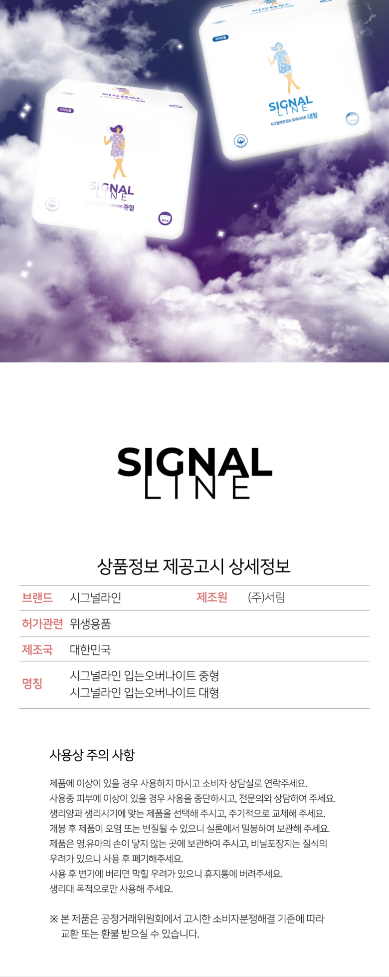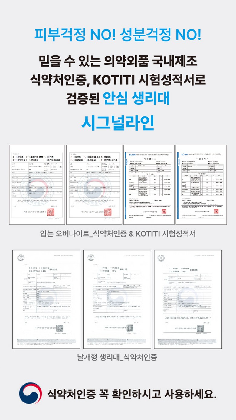 | 품명 및 모델명 | 시그널라인 입는 오버나이트 | 인증/허가 사항 | 상품 상세페이지 참조 |