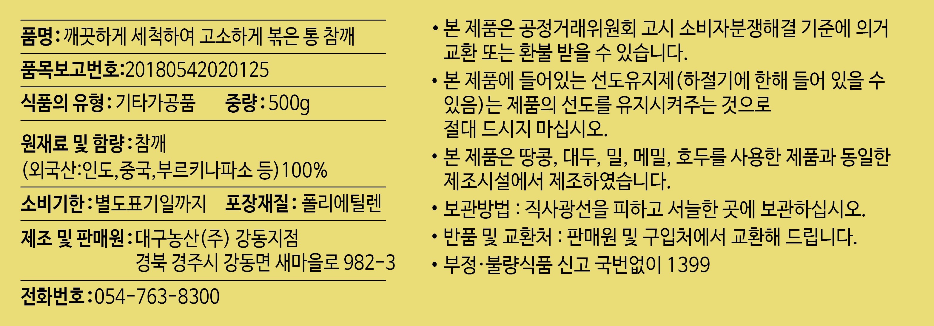 | 제품명 | 깨끗하게 세척하여 고소하게 볶은 통 참깨 | 식품의 유형 | 컨텐츠참조 |