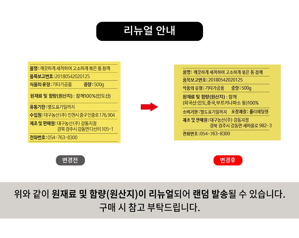 ※ 리뉴얼 진행중인 상품으로 원재료 및 함량 (원산지)이 상이한 동일 제품을 수령하실 수 있습니다.