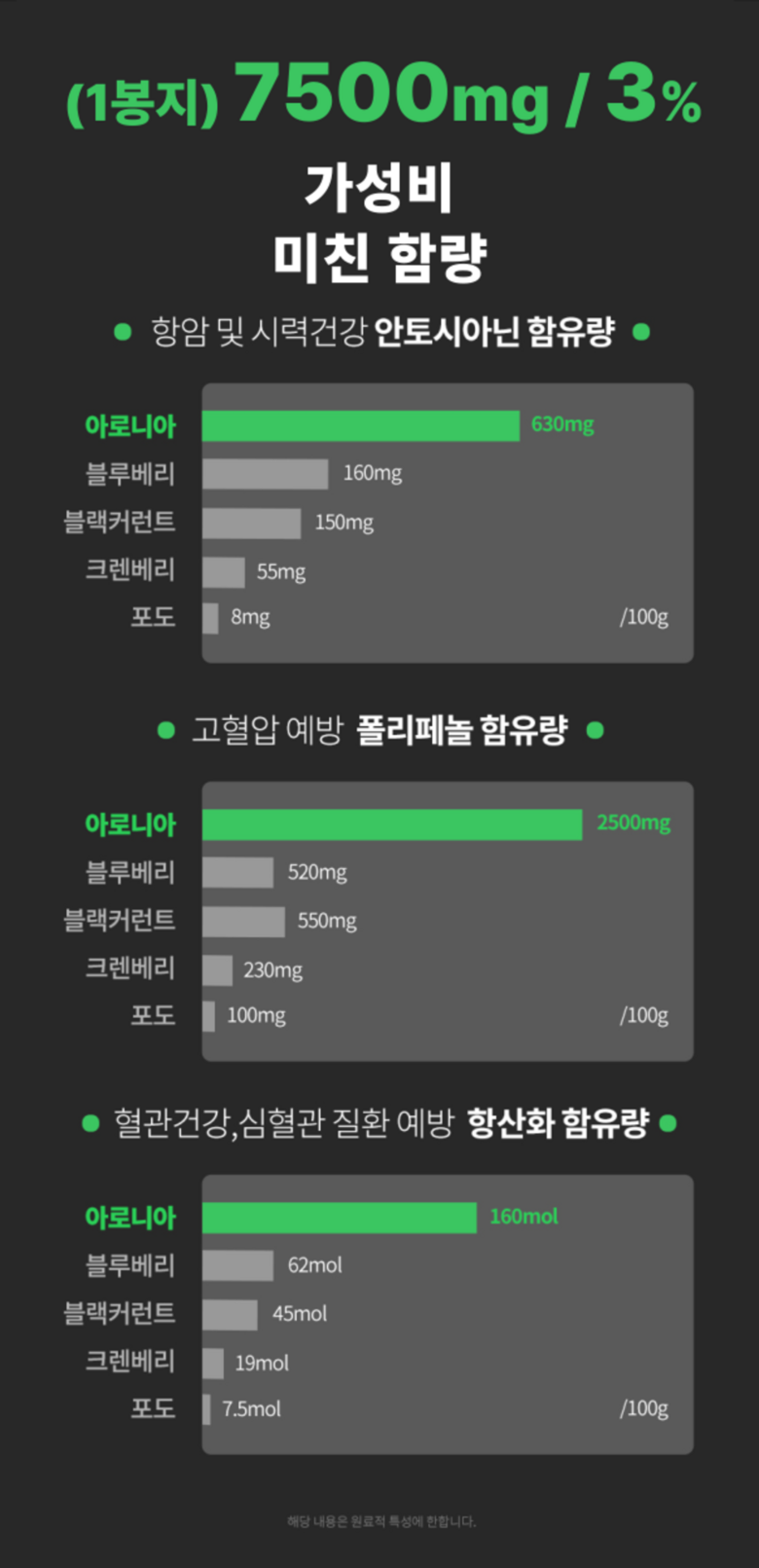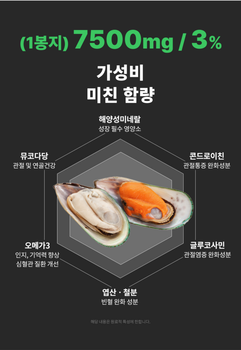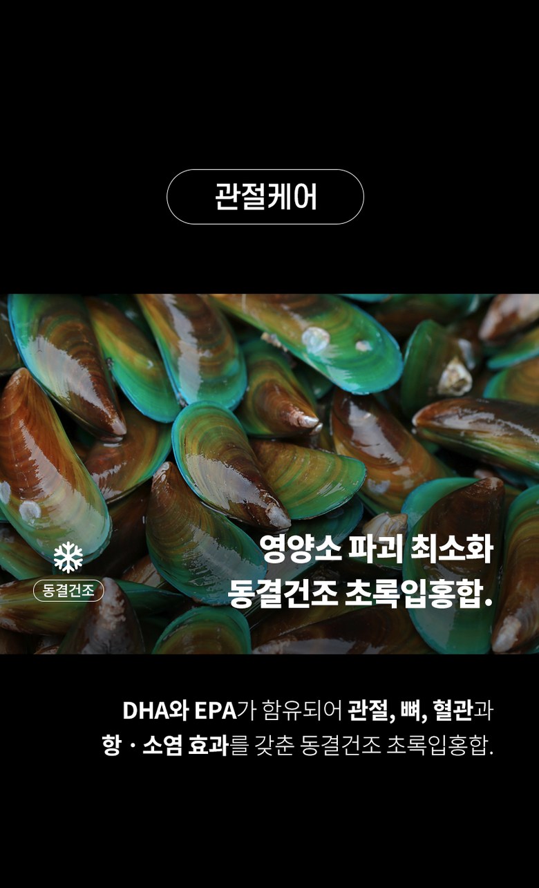 - 식품 기능: 눈물 개선/눈건강 뼈/관절강 알러지 예방 심장/간