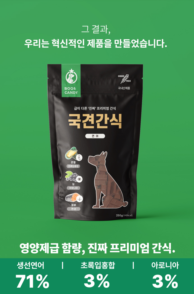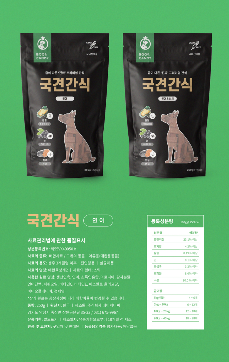 | 제품명 | 국견간식 | 식품의 유형 | 기능성 영양간식 |