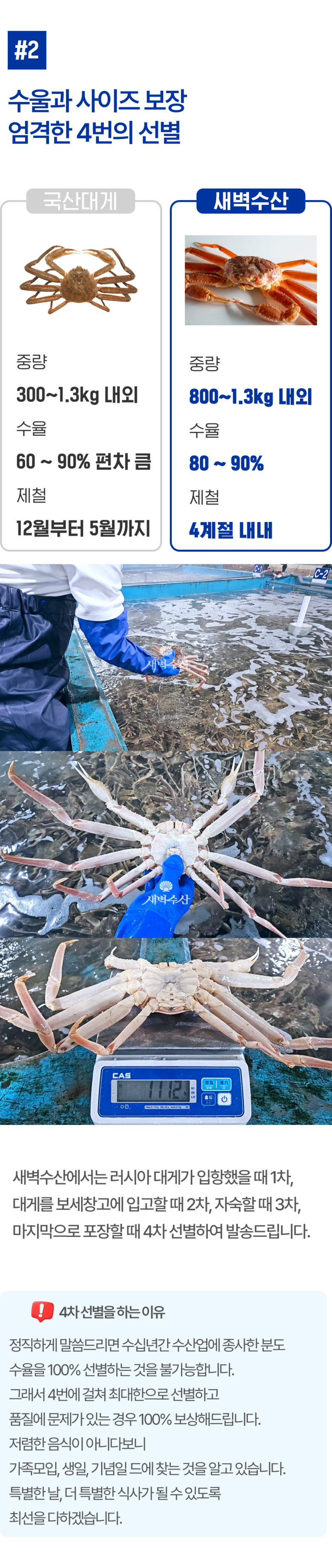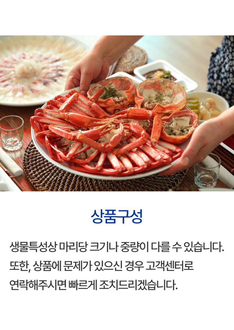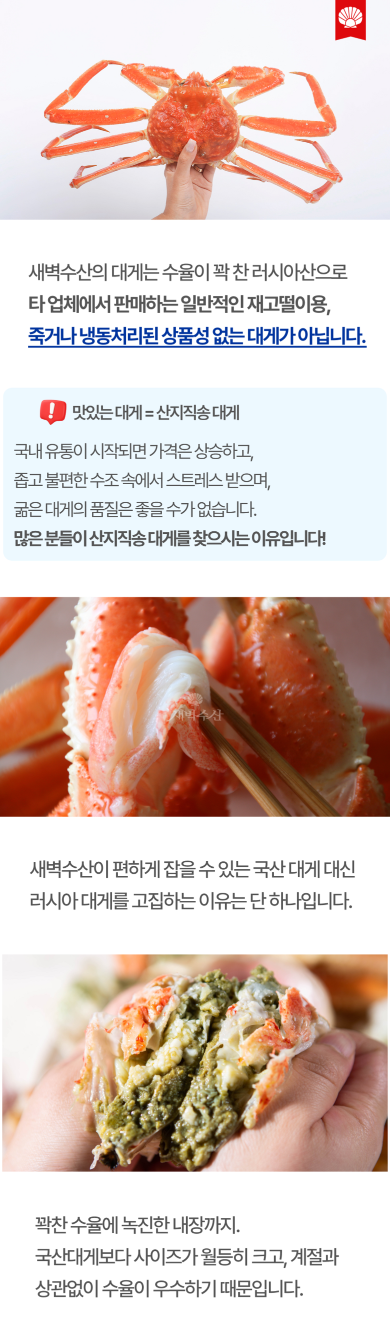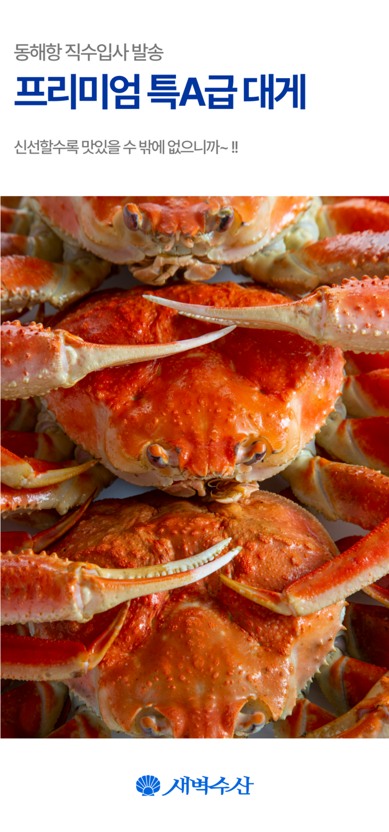 | 품목 또는 명칭 | 새벽수산 프리미엄 대게 | 포장단위별 내용물의 용량(중량),수량,크기 | 1kg 내외 (1마리) / 2kg (2마리) / 3kg (3~4마리) / 6kg(6~8마리) |