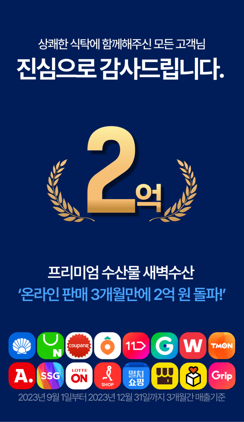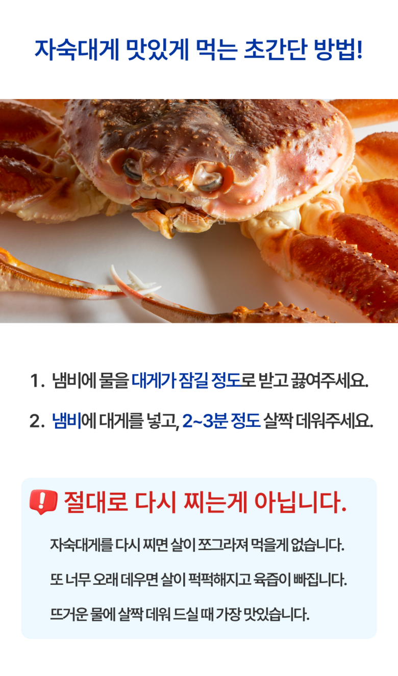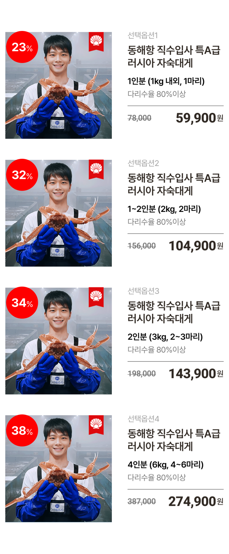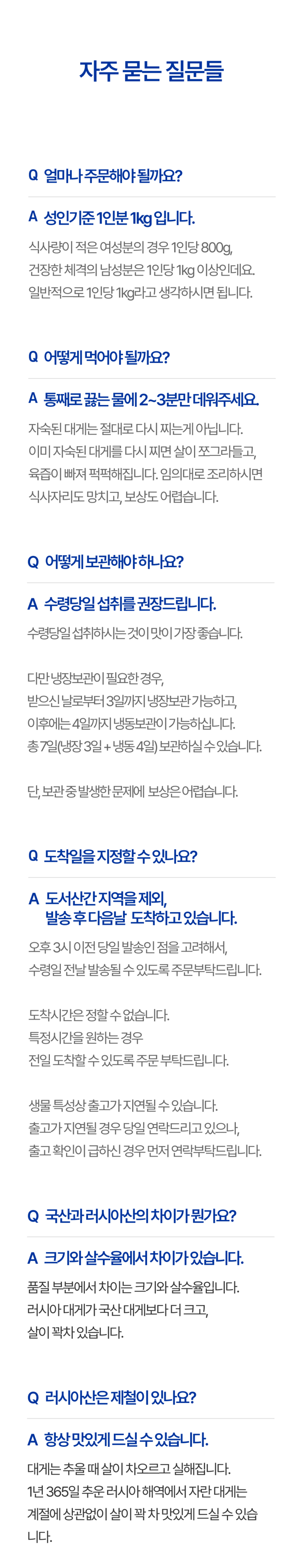 | 품목 또는 명칭 | 새벽수산 프리미엄 대게 | 포장단위별 내용물의 용량(중량),수량,크기 | 1kg 내외 (1마리) / 2kg (2마리) / 3kg (3~4마리) / 6kg(6~8마리) |