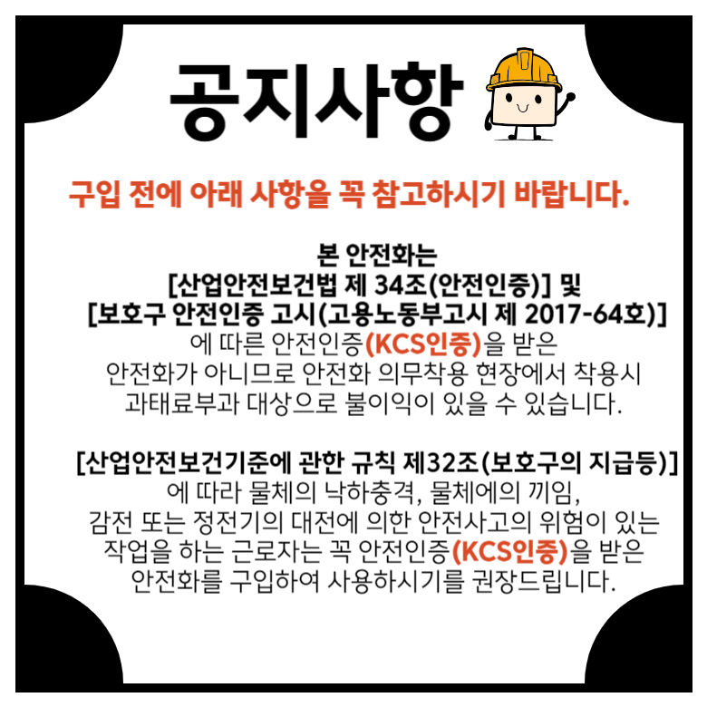 | 품명 및 모델명 | 퓨어몰링 남자 사계절용 안전화 미끄럼방지 경량안전화 발편한 작업화 PMAQ88 | 인증/허가 사항 | 상품 상세페이지 참조 |