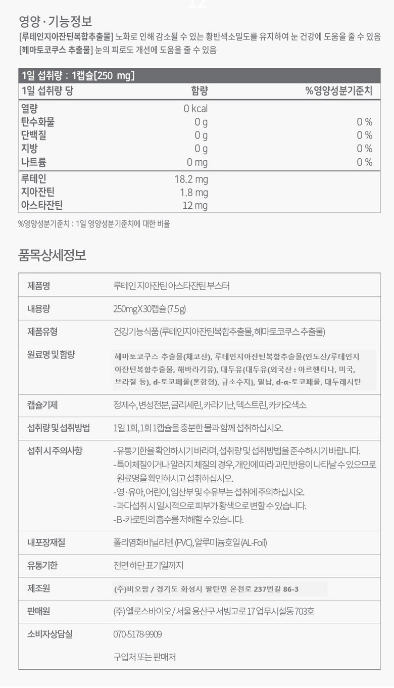 | 원료명 및 함량 | 상품 상세페이지 참조 | 영양정보 | 상품 상세페이지 참조 |