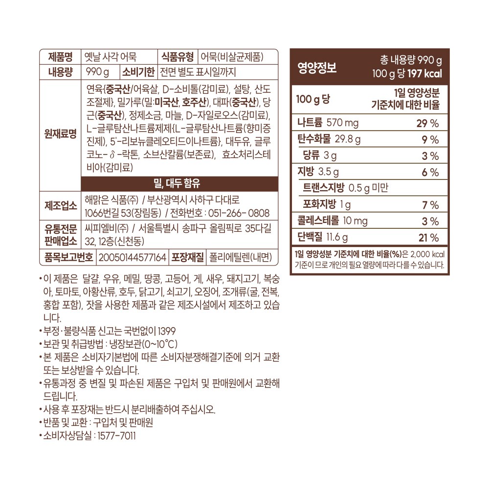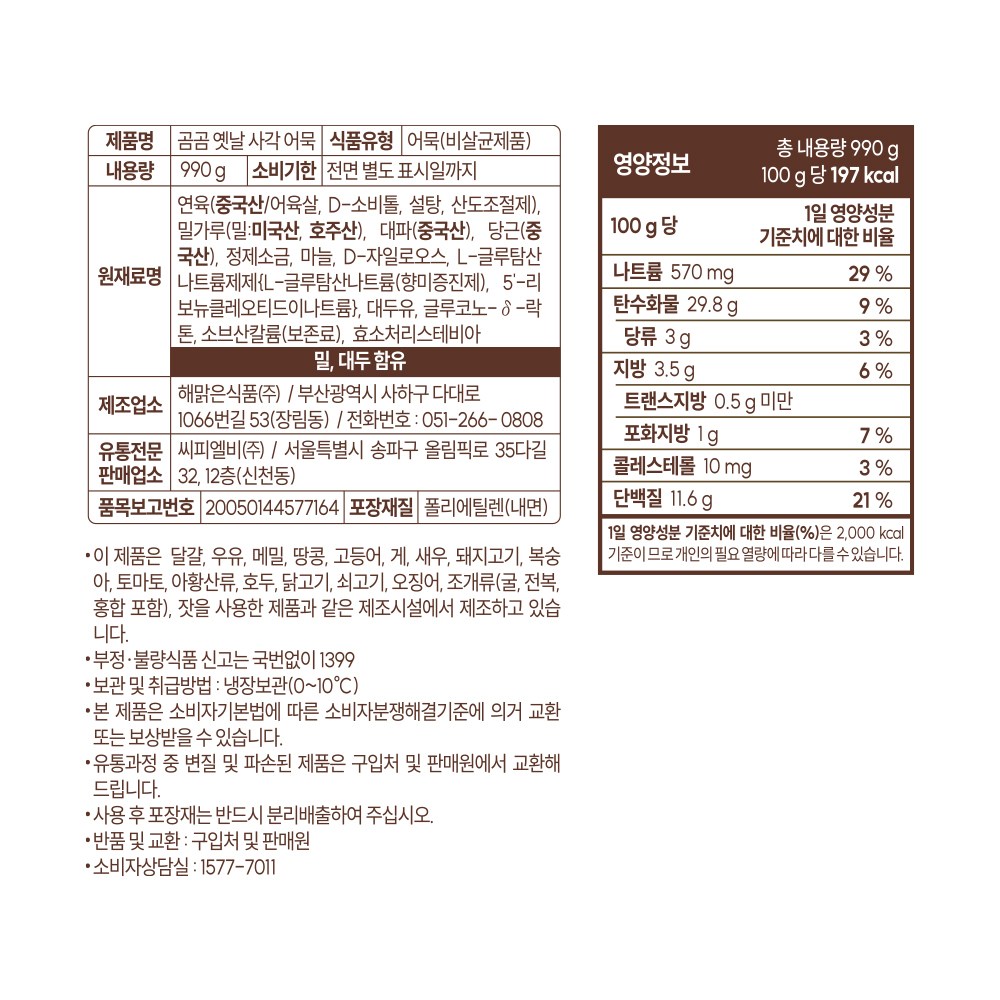 | 제품명 | 컨텐츠 참조 | 식품의 유형 | 어묵 |