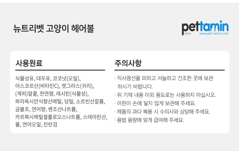- 기능: 헤어볼 영양제