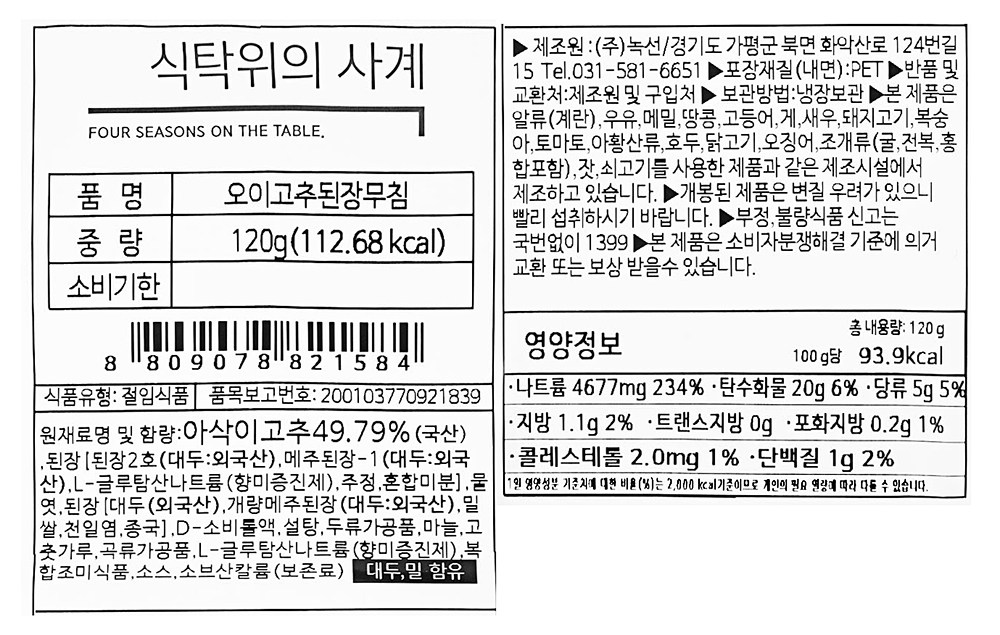 | 제품명 | 컨텐츠 참조 | 식품의 유형 | 컨텐츠 참조 |