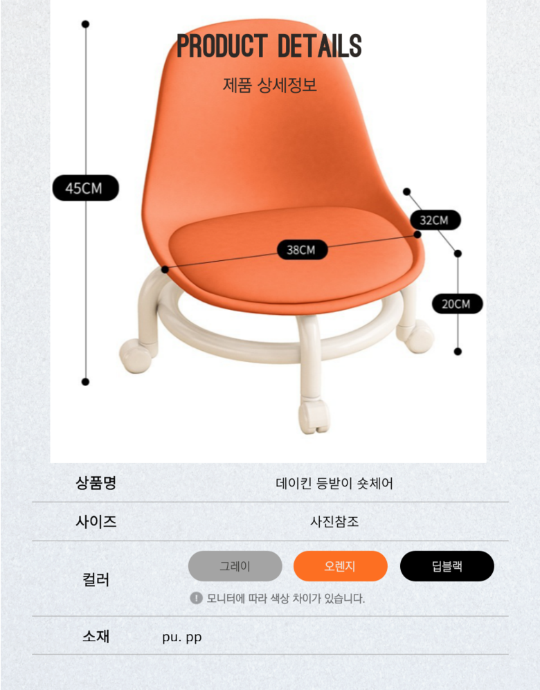 | 품명 | 데이킨 등받이 숏체어 | KC 인증정보 | 해당없음 |