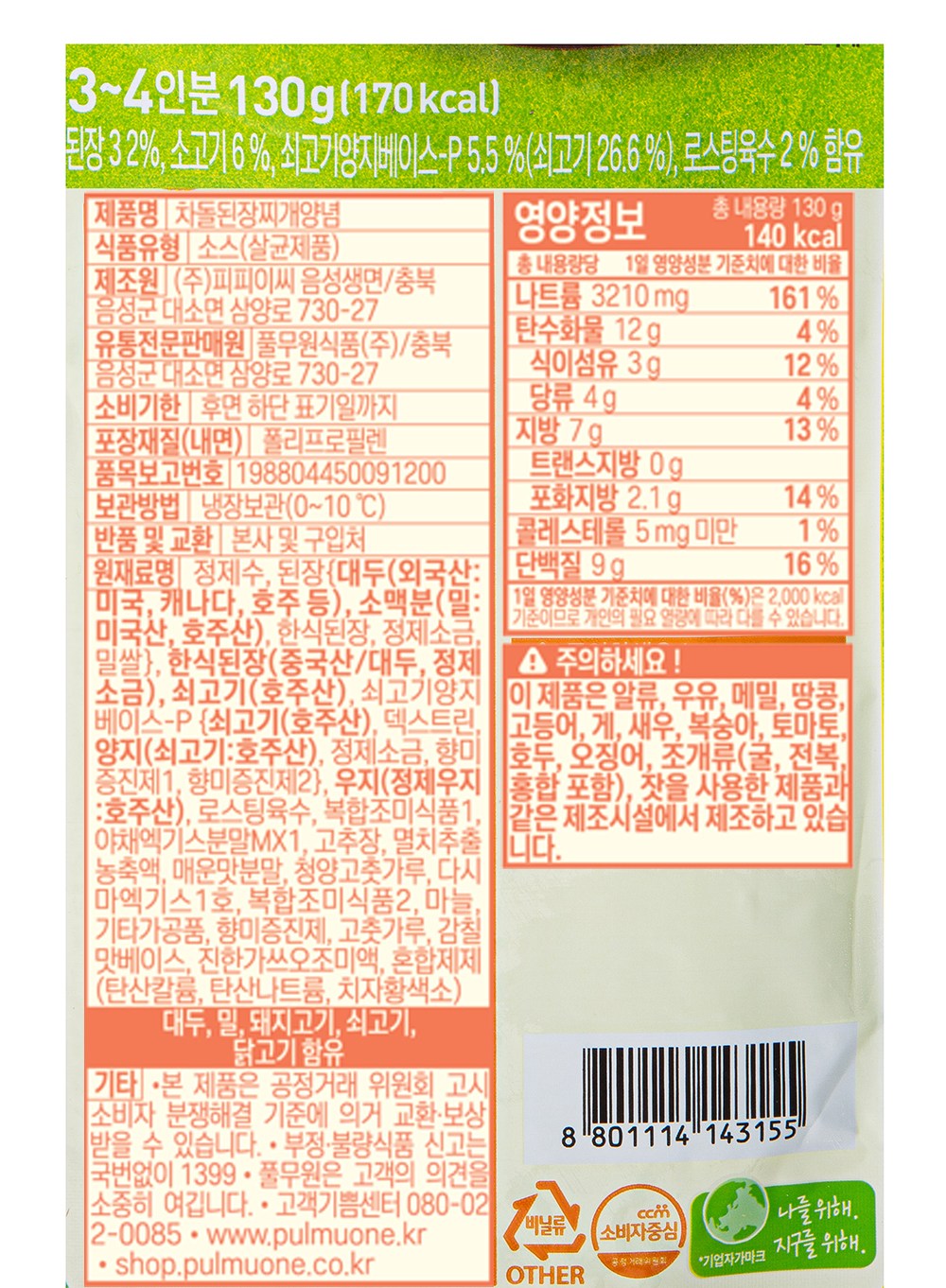 - 소스 종류: 찌개양념