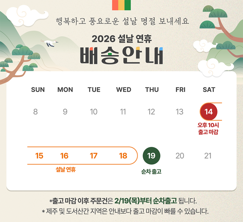 | 배송기간 | ㆍ도서산간 지역 등은 배송에 3-5일이 더 소요될 수 있습니다. - 천재지변, 물량 수급 변동 등 예외적인 사유 발생 시, 다소 지연될 수 있는 점 양해 부탁드립니다. | ||