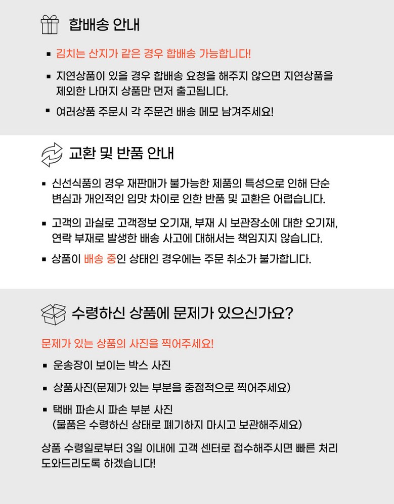 - ㆍ교환/반품에 관한 일반적인 사항은 판매자가 제시사항보다 관계법령이 우선합니다.