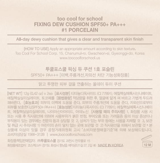 | 화장품제조업자, 화장품책임판매업자 및 맞춤형화장품판매업자 | 컨텐츠 참조 | 제조국 | 컨텐츠 참조 |