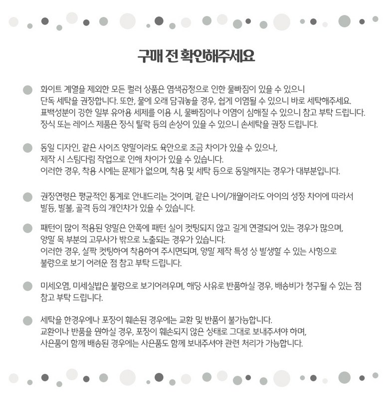 - ㆍ모니터 해상도의 차이로 인해 색상이나 이미지가 실제와 달라, 고객이 단순 변심으로 교환/반품을 무료로 요청하는 경우