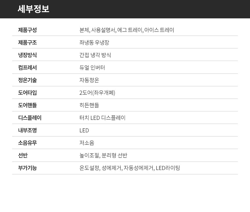- 냉장/냉동칸 구조: 좌냉동 우냉장