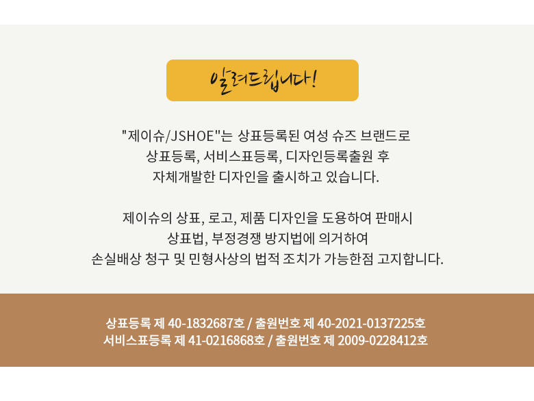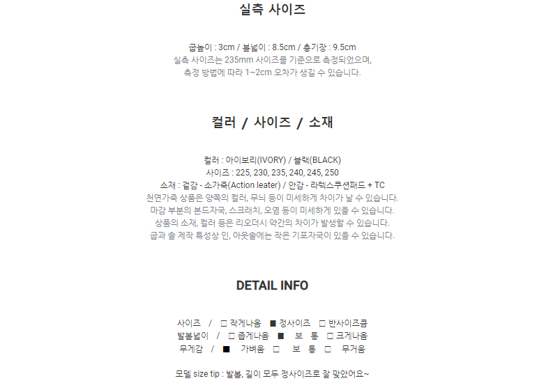 | 제조국 | 중국oem | 취급시 주의사항 | 직사광선을 피하여 서늘하고 통풍이 잘되는곳에 보관 / 수분 노출에 주의 / 천연가죽 제품은 한쌍의 슈즈라도 양쪽의 무늬가 미세하게 차이가 있을수 있음 |