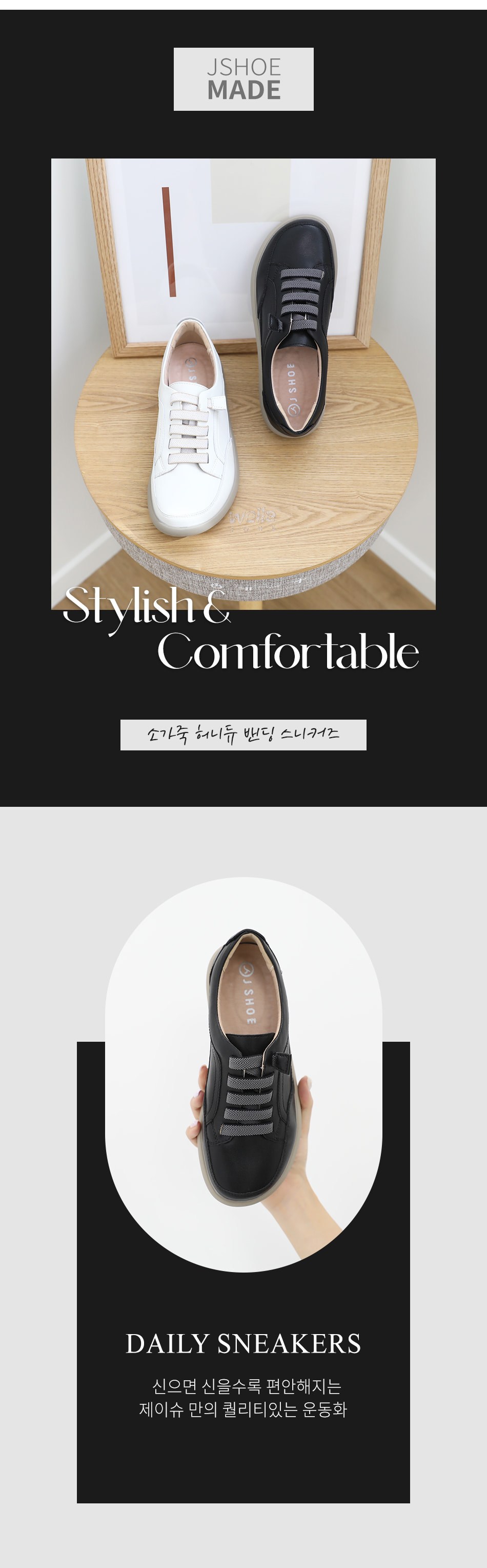 - 제품명(신발이름): 제이슈 소가죽 허니듀 밴딩 스니커즈 3cm