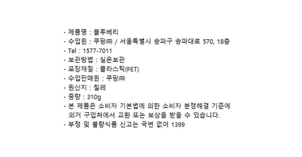 | 제조연월일, 소비기한 또는 품질유지기한 | 업데이트 예정 | 세부 품목군별 표시사항 | 농수산물 : 유전자변형(해당 없음) / 지리적 표시사항(해당 없음) |