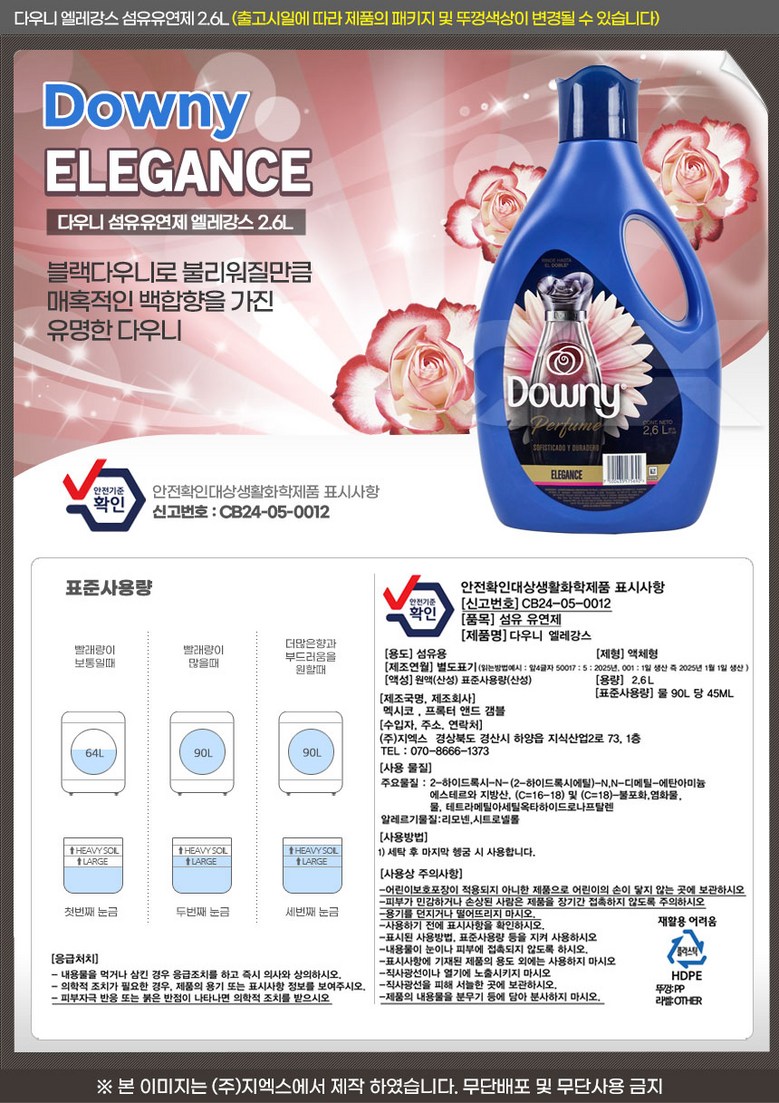 | 품목 및 제품명 | 상품 상세페이지 참조 | 용도(표백제의 경우 계열을 함께표시) 및 제형 | 상품 상세페이지 참조 |