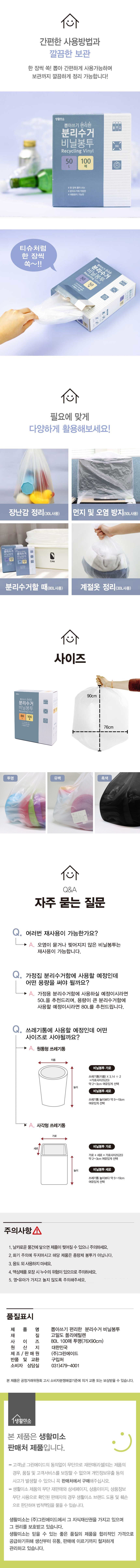 | 품명 및 모델명 | 생활미소 분리수거 비닐봉투 | 인증/허가 사항 | 해당없음 |