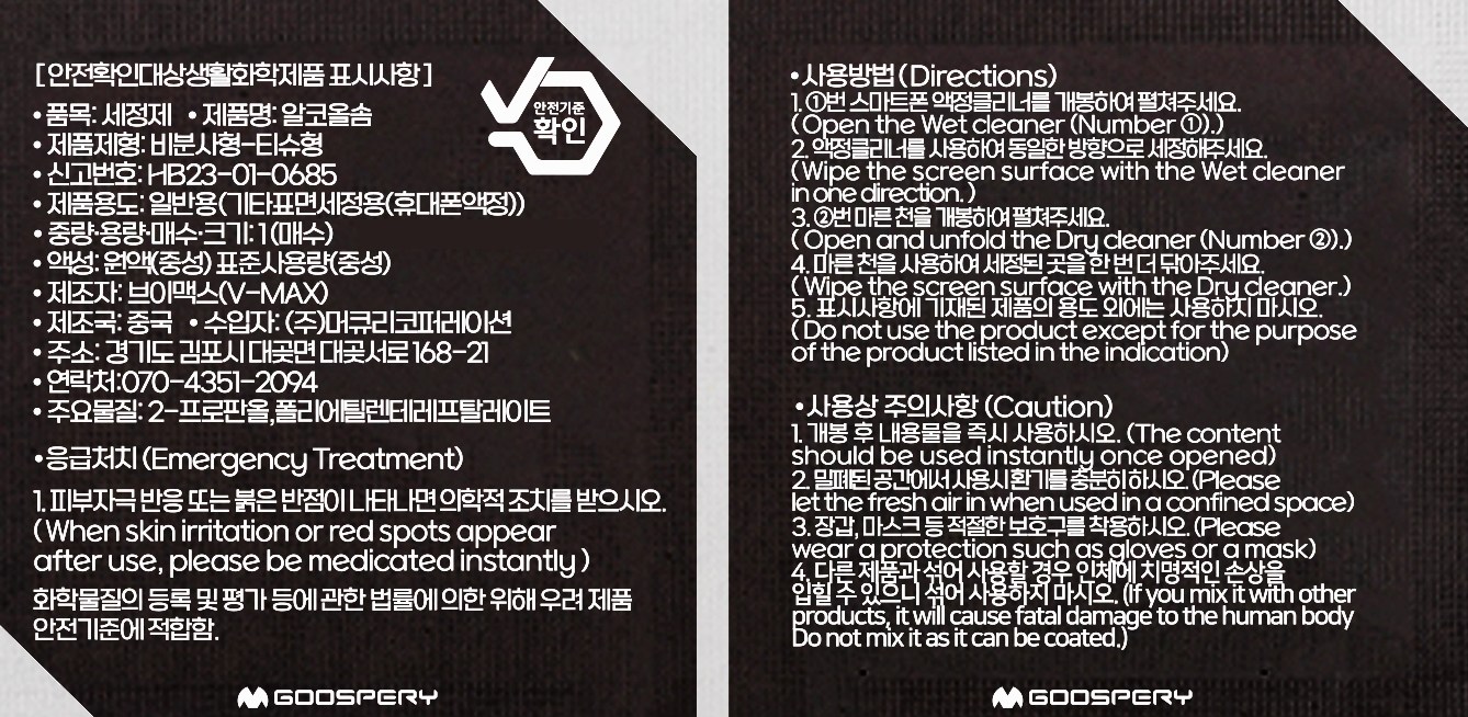 | 제조국(원산지) | 본품 : 중국 | 알콜솜 : 컨텐츠참조 | 제조자(수입자) | 본품 : (주)머큐리코퍼레이션/업체미제공 | 알콜솜 : 컨텐츠참조 |