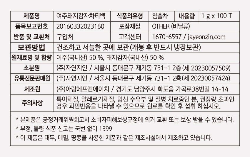 - 전통차 종류: 돼지감자차