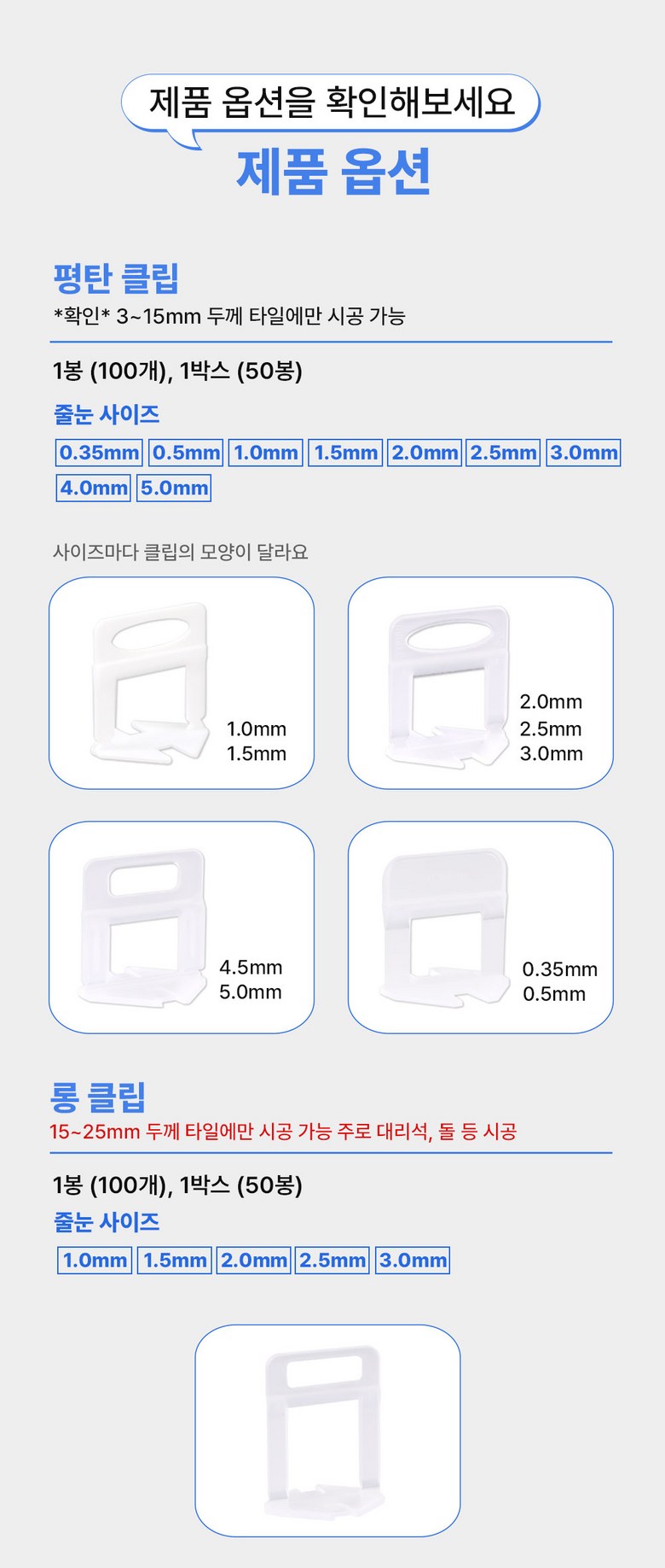 | 품명 및 모델명 | 타일평탄 클립 | 인증/허가 사항 | 상품 상세페이지 참조 |