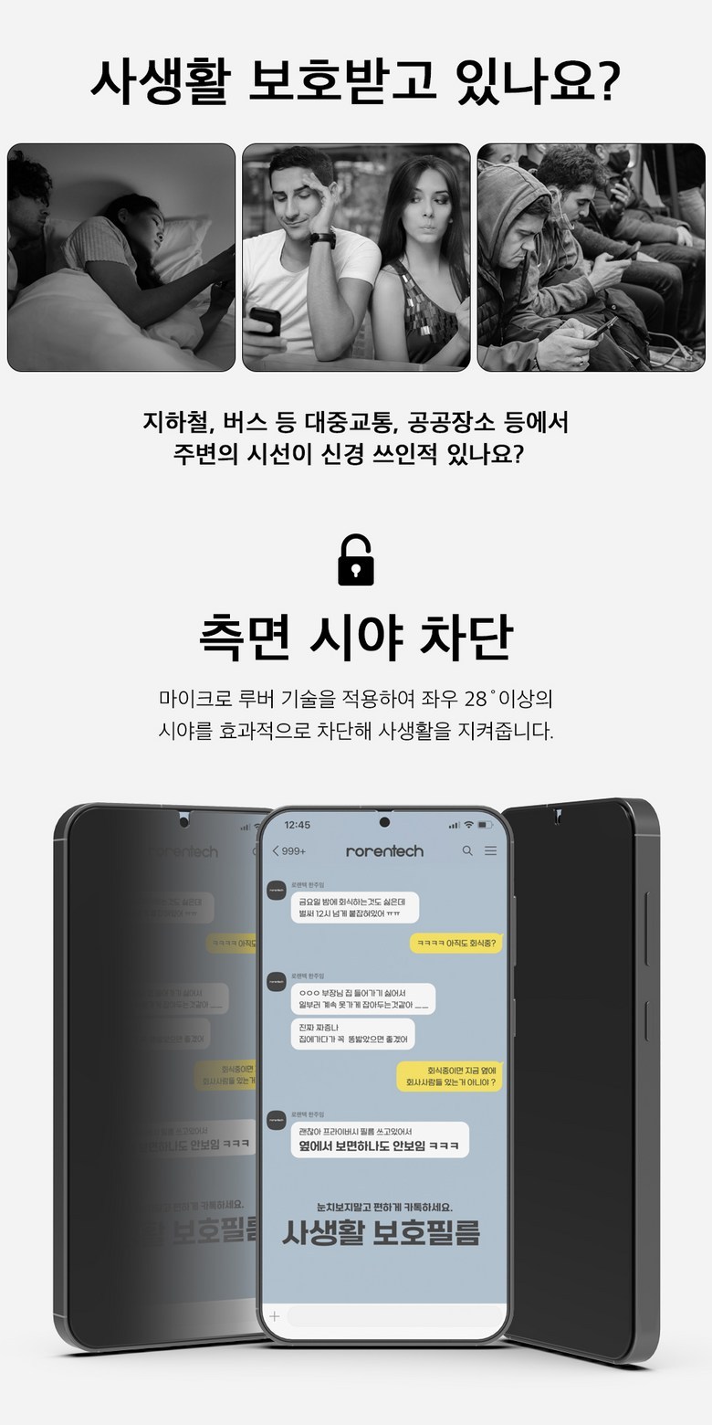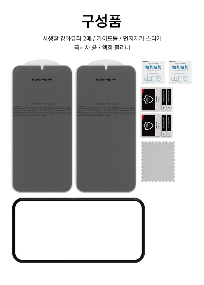 | 품명 및 모델명 | 로랜텍 부착가이드 강화유리 사생활 프라이버시 액정보호필름 | 인증/허가 사항 | 본품: 해당없음 | 알콜솜: EB19-01-0652 |