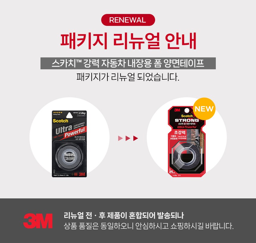 | 품명 및 모델명 | 3M 스카치 초강력 다용도 폼 양면테이프 UPR210 | 인증/허가 사항 | 해당 없음 |