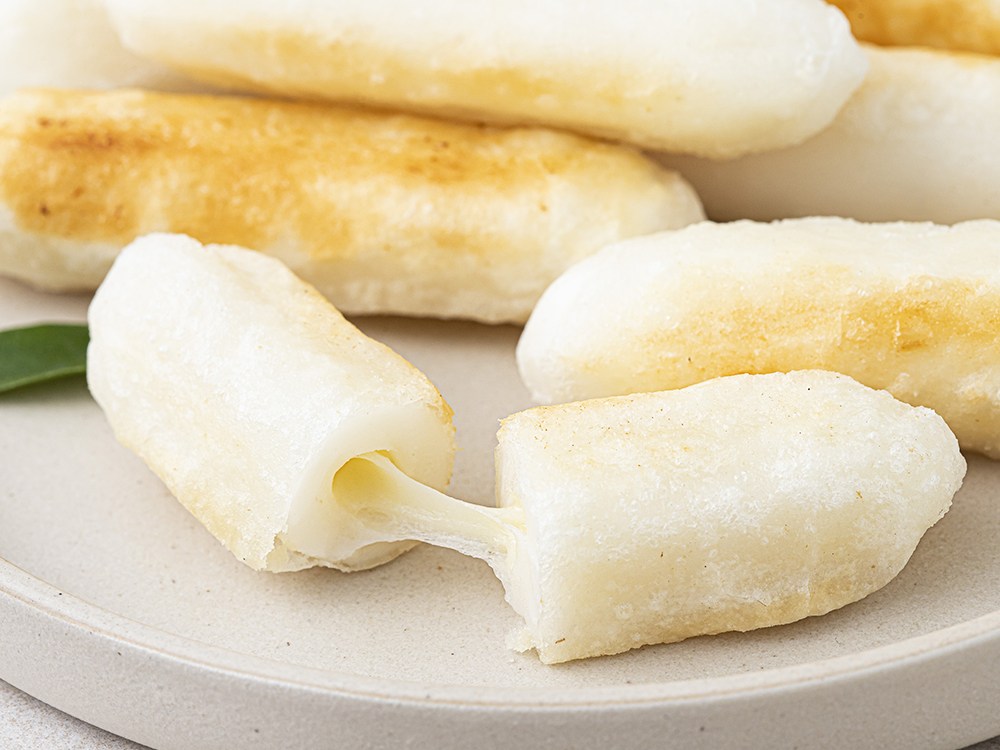겉도 쫄깃하고 속도 쫄깃한 치즈떡이에요. 한입 먹으면 고소한 풍미로 입맛을 사로잡죠. 씹을수록 은은하게 느껴지는 달달함 또한 일품이랍니다. 노릇노릇하게 구워서 즐겨보세요. 바삭바삭한 식감 또한 느낄 수 있어 즐거울 거예요.