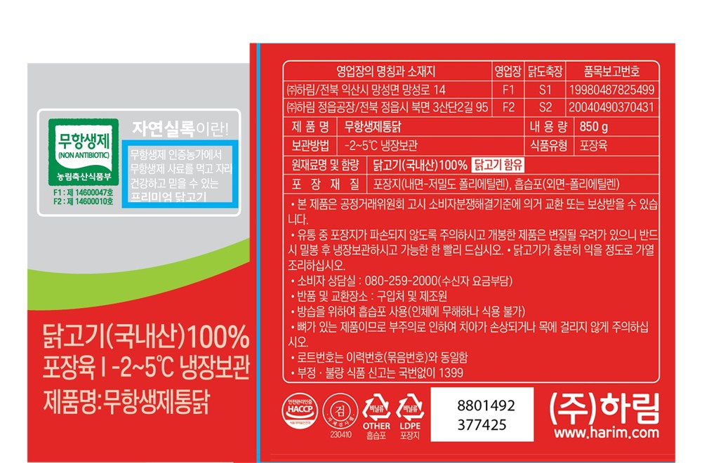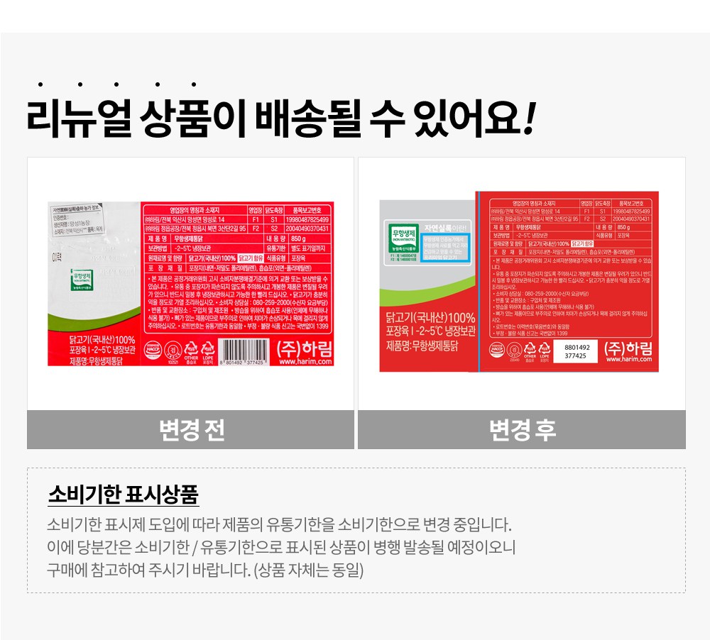 | 제조연월일, 소비기한 또는 품질유지기한 | 소비기한(또는 유통기한) : 2026년 02월 03일 이거나 그 이후인 상품 제조년월일 : 2026년 01월 26일 이후인 제조상품 | 세부 품목군별 표시사항 | 축산물 등급표시 : 해당 없음 / 이력번호 표시유무 : 이력번호 표시제품임 |