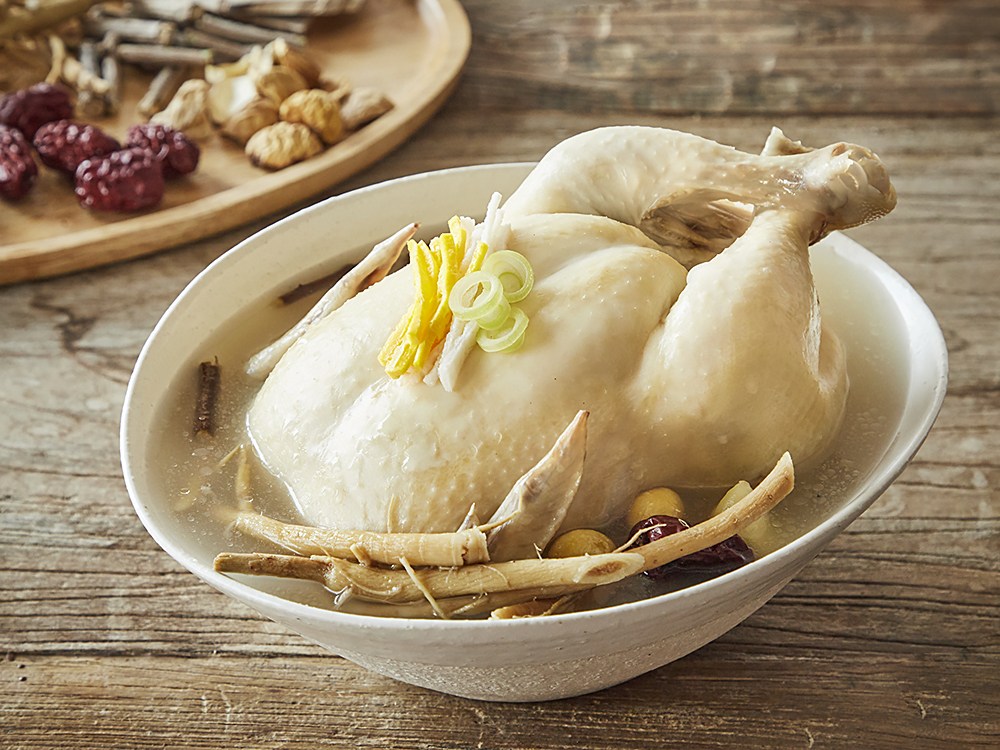 재료: 닭고기, 찹쌀, 통마늘 5쪽, 소금 약간, 대추 4개, 황기 1뿌리, 인삼 1뿌리