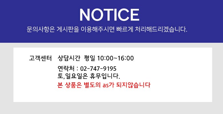 - 상품문의 및 후기게시판을 통해 취소나 환불, 반품 등은 처리되지 않습니다.