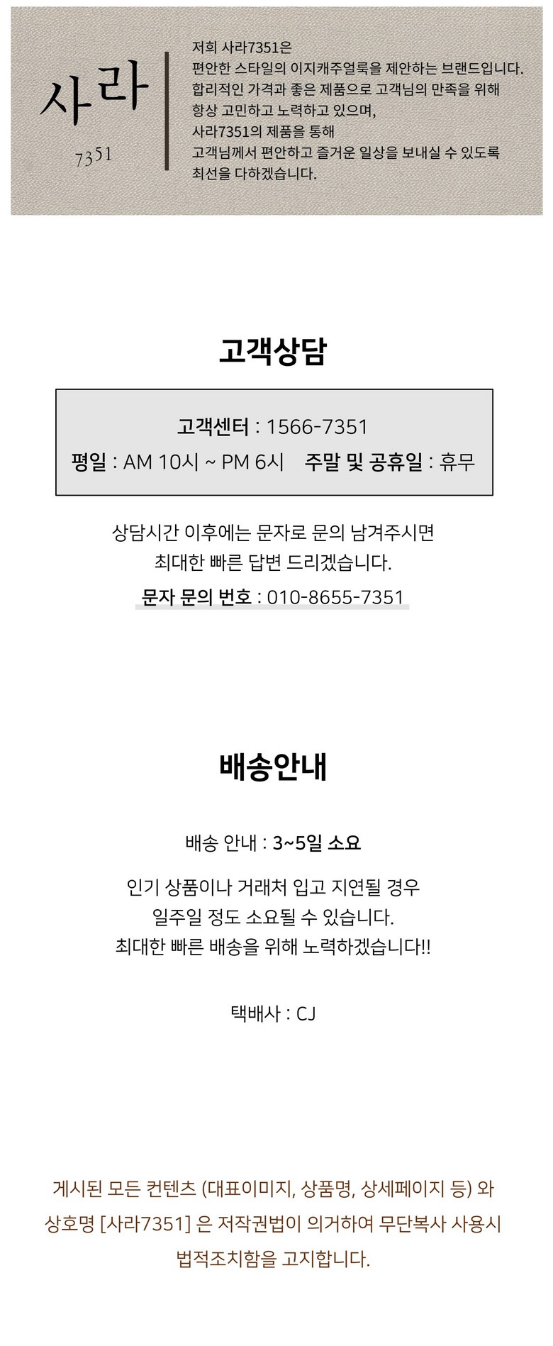 - ㆍ모니터 해상도의 차이로 인해 색상이나 이미지가 실제와 달라, 고객이 단순 변심으로 교환/반품을 무료로 요청하는 경우